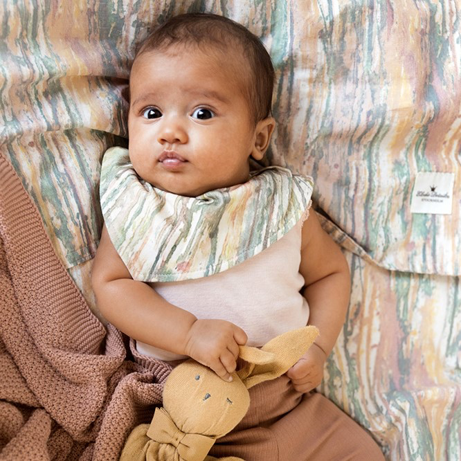 Keeping your little one Dry at all times can be a challenge. These fabulous fabrics can do just that, and do it with grace! No more spit or dribble on that carefully selected outfit. They feature double layers of Oeko-Tex certified and waterproof soft cotton. Two press studs in the neck create two different sizes. Easy to clean, easy to fasten, hard to be without.